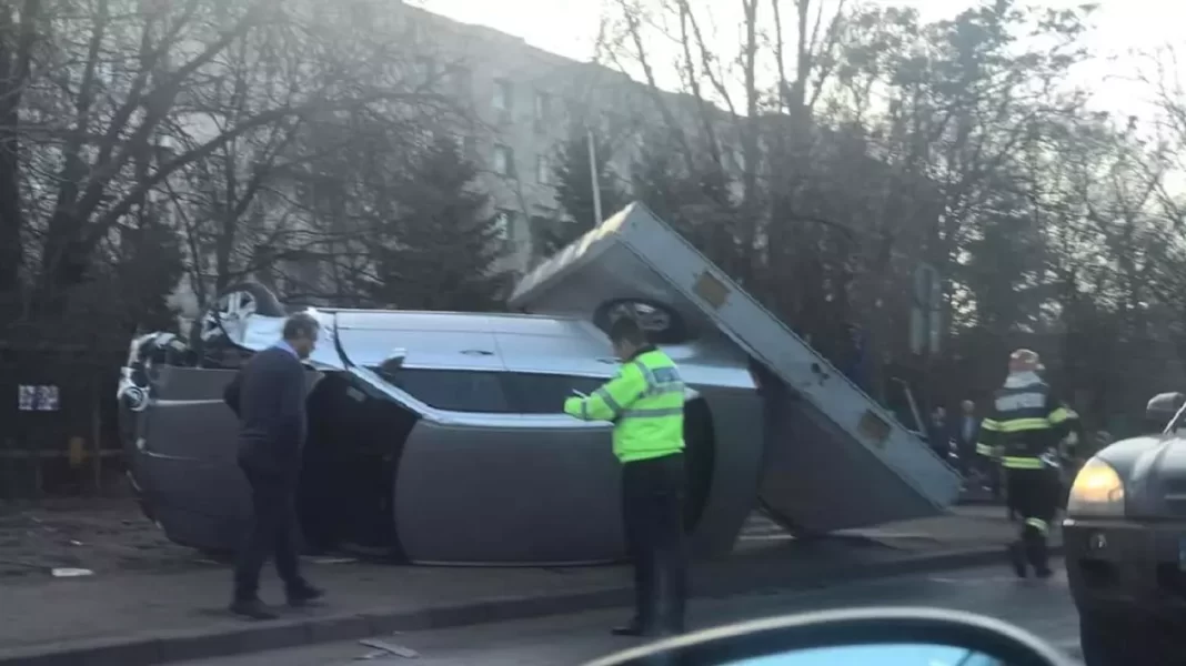 Eleve lovite pe trotuar de un şofer drogat, care s-a ciocnit cu alte două autoturisme
