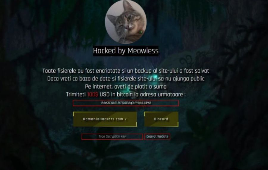 „Toate fișierele au fost encriptate și un backup al site-ului a fost salvat. Dacă vreti ca baza de date și fișierele site-ului să nu ajungă public pe internet, aveți de plătit o sumă. Trimiteți 100$ USD în bitcoin la următoarea adresă”, se arată într-un mesaj care apare la accesarea siteului Consiliului Județean Cluj.