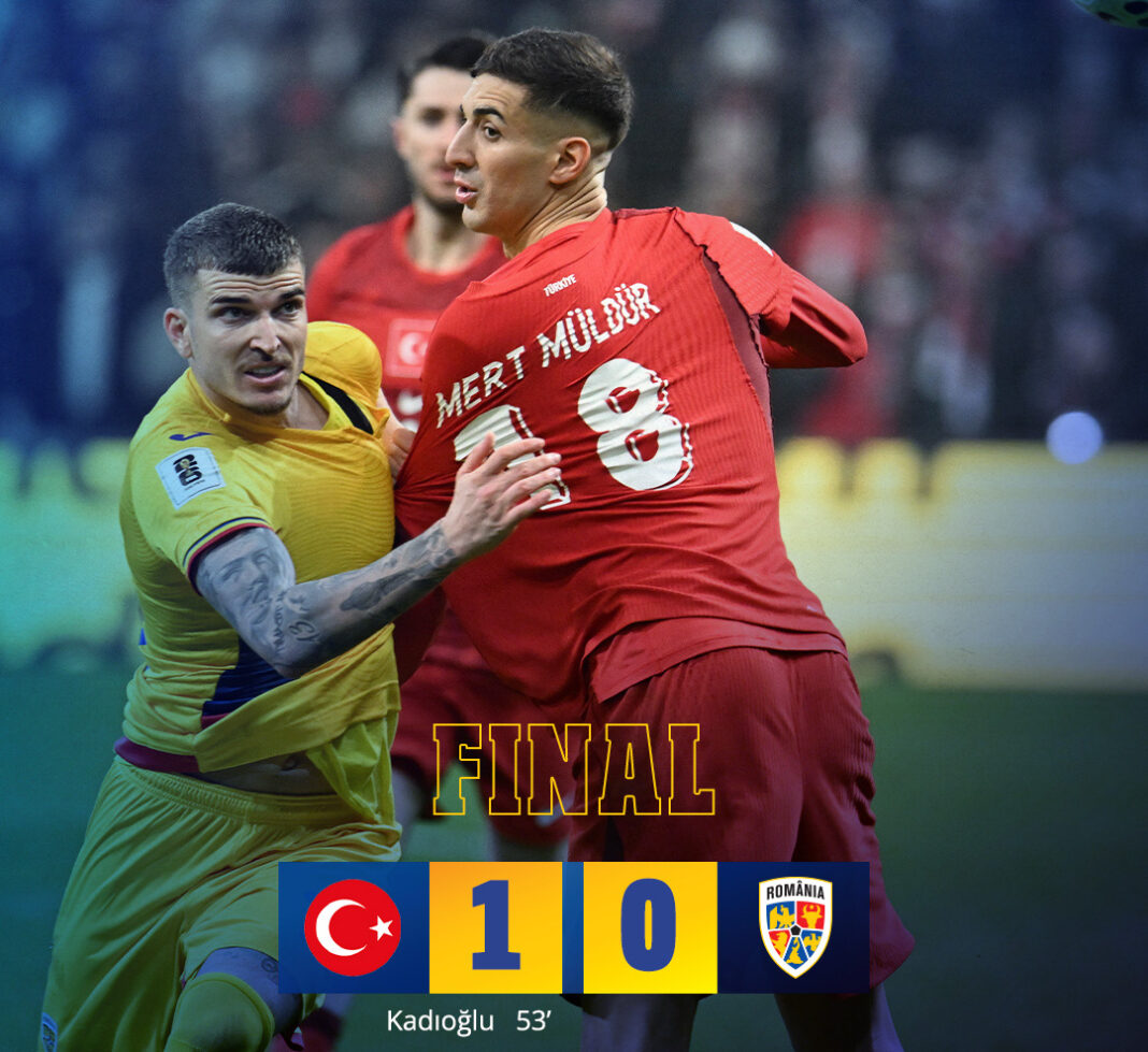 Echipa națională de fotbal a României a pierdut la limită (0-1) meciul de baraj cu Turcia care ne-ar fi putut trimite cu un pas mai aproape de Cupa Mondială de Fotbal din Canada, Mexic și SUA din această vară. Urmează patru ai de așteptare pentru o eventuală nouă participare a naționalei noastre la cel mai galonat turneu de fotbal al planetei (la nivel de reprezentative naționale).