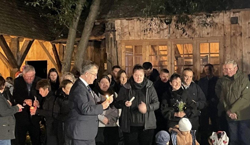 În fața ”Casei Albastre” de la Viscri a regelui Charles al III-lea, a fost ținut duminică seara un moment emoționant de reculegere în memoria reginei Elisabeta a II-a, la care au participat zeci de oameni.