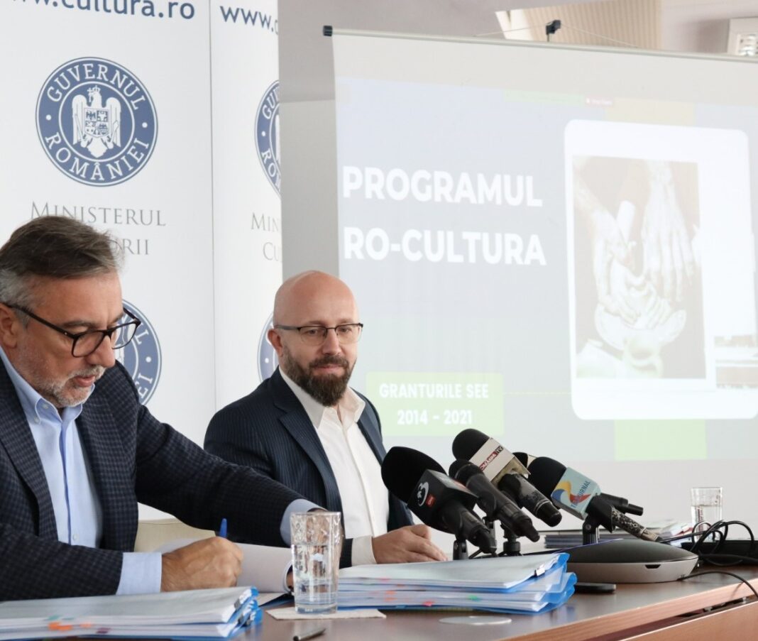 Ministerul Culturii, prin Unitatea de Management a Proiectului, a organizat vineri, 21 octombrie a.c., ora 11.00, la sediul ministerului, o conferința de presă pe tema semnării contractelor de finanțare aferente celor 17 proiecte selectate în cadrul apelului Consolidarea antreprenoriatului cultural și dezvoltarea audienței și a publicului (sesiunea 3), finanțat prin Programul RO-CULTURA, cu sprijinul Granturilor SEE 2014 – 2021.