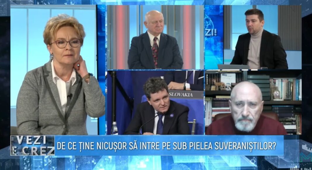Invitații emisiunii „Vezi ce crezi”, realizată de Dana Chera la Metropola TV, au dezbătut astăzi pe tema mișcărilor care se înregistrează pe scena politică. S-a vorbit despre eventuala înlocuire la șefia AUR a lui George Simion cu profesorul Dungaciu, despre o potențială ruptură în PNL, dar și despre o reorientare înspre naționalism-suveranism de care ar putea fi „convins” de către partenerul strategic american tocmai președintele progresist Nicușor Dan.