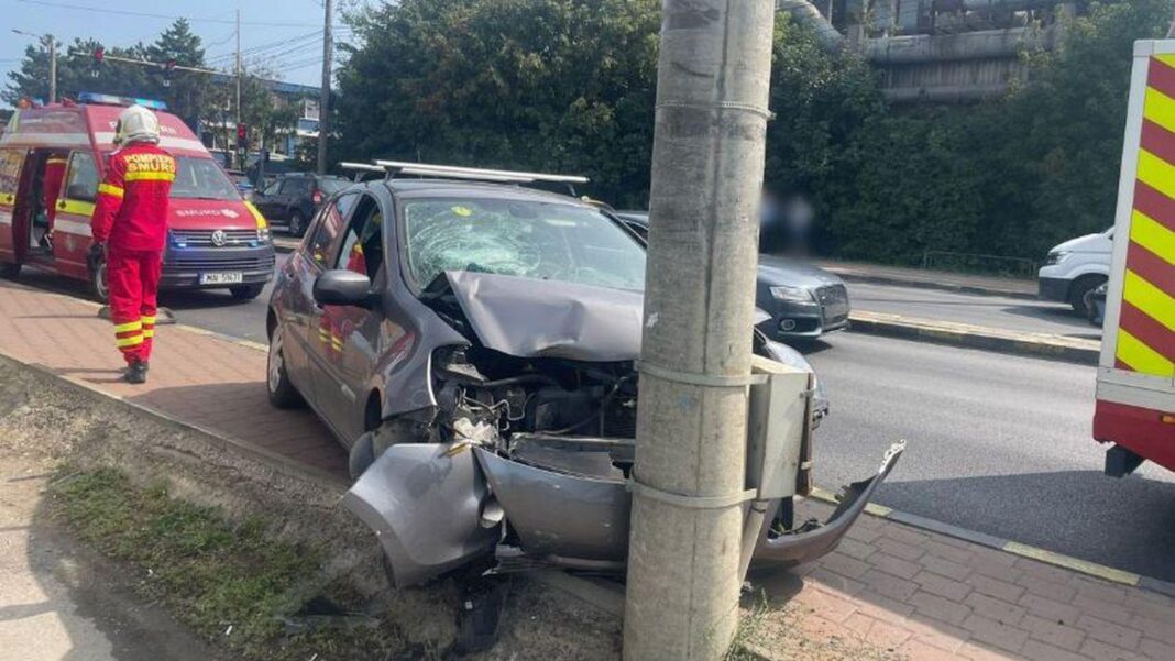 O şoferiţă din Suceava a lovit pietoni aflați pe trotuar şi s-a oprit într-un stâlp
