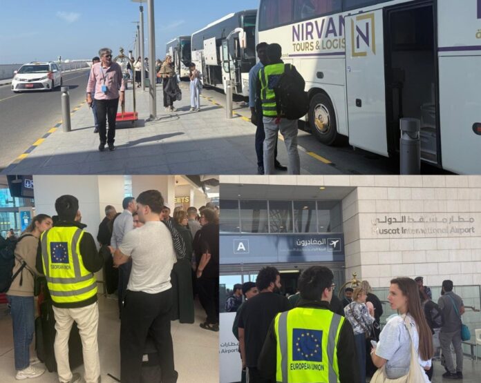 Transportul românilor din Dubai către Muscat a fost realizat cu nouă autocare, organizate de consulatul României din Emiratele Arabe Unite.