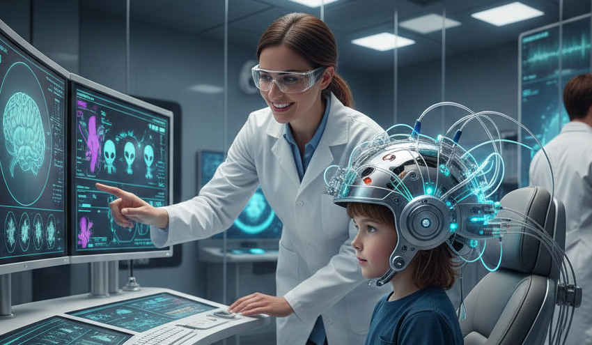 Cu ajutorul căștii, se poate vedea activitatea electrică în toate cele 47 de zone din creier. Se poate vedea dacă există anumite fluctuații care nu se află în parametrii normali. Dacă este prea mult timpul în servo sau prea puțin. Scanarea durează 14 minute, timp în care sunt colectate peste 80.000 de date. Specialiștii obțin o hartă clară a modului în care funcționează mintea unui tânăr geniu.