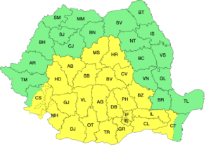 Cod galben de vânt și ploi în mai multe județe